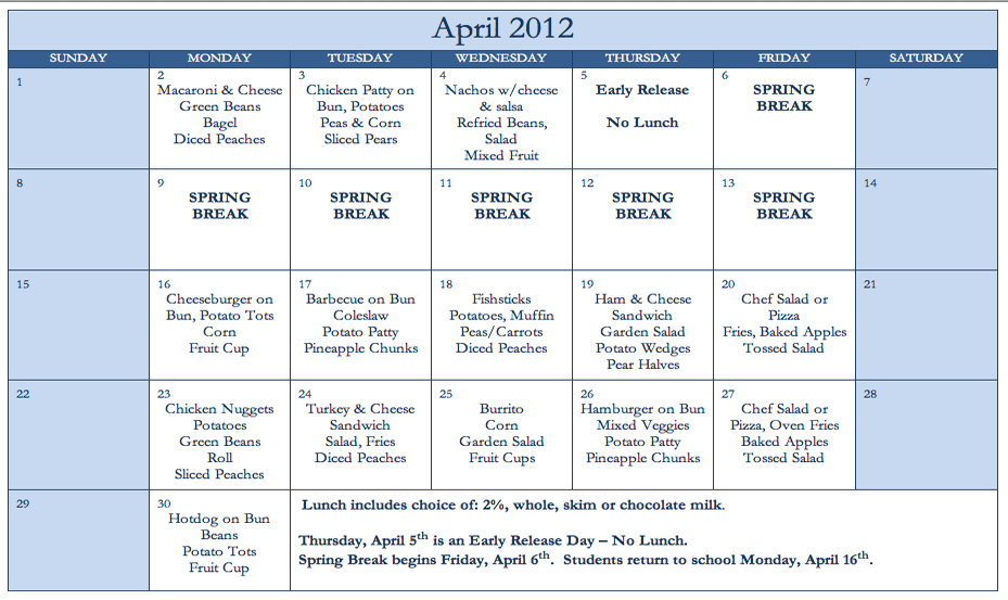 Click here for Next Month's lunch menu!